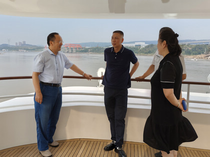 調研伊始,我司領導陪同溫良德董事長一行參觀了為四川省廣安航務海事事務中心打造的40米應急救援船。領導們聽取了該救援船技術創新、性能優勢等詳細介紹。